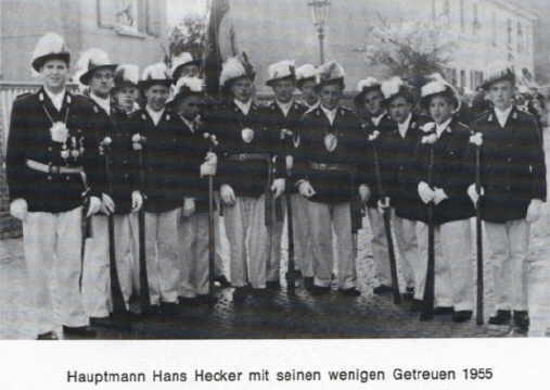 Aus diesem Anlass präsentierte sich die Kompanie mit Pagen und einem Beritt. Als Geschenk der Bruderschaft wurde Hauptmann Hans Hecker ein Degen überreicht, der seither vom Hauptmann der Kompanie getragen wird. Gerne hätten die Junggesellen auch den Schützenkönig gestellt. Doch Hauptmann Hans Hecker holte die Platte nicht herunter, so dass schließlich der Chef der Bruderschaft, Heinrich Hecker, König wurde.